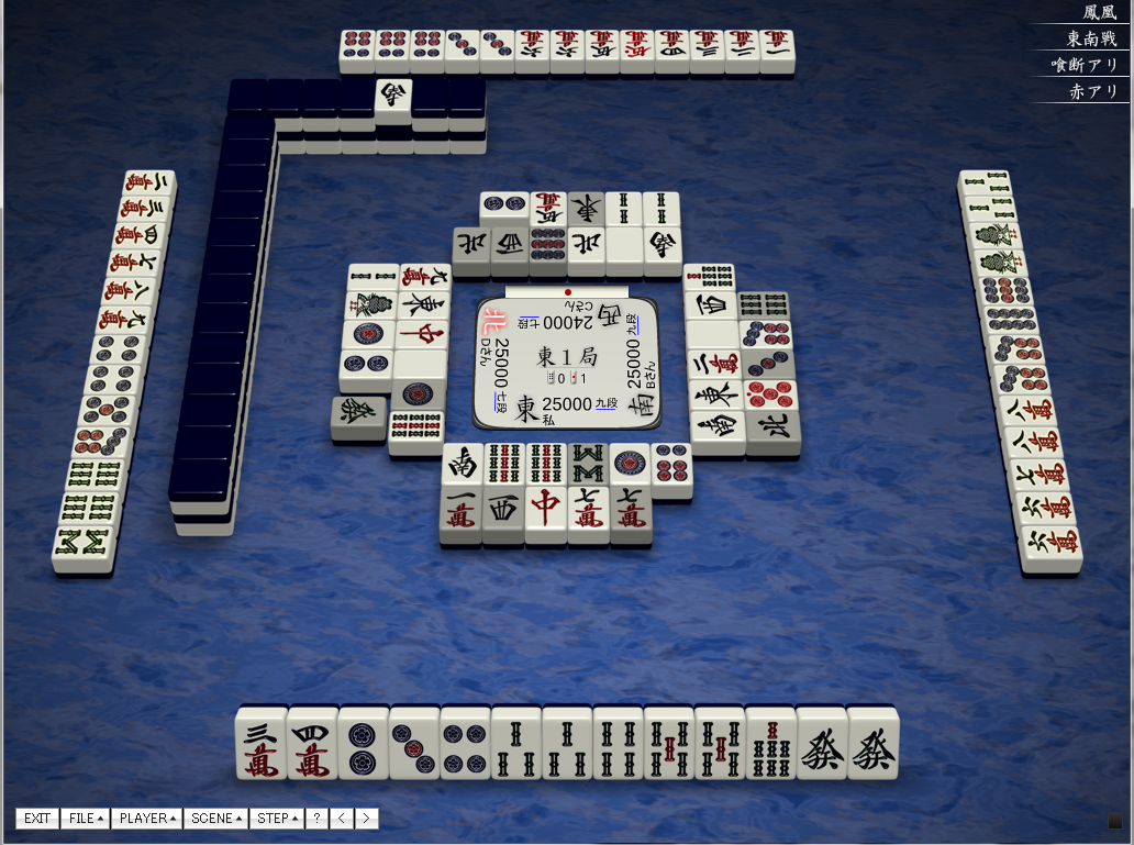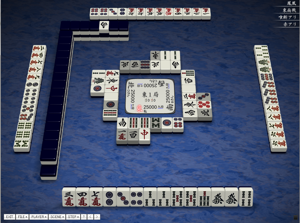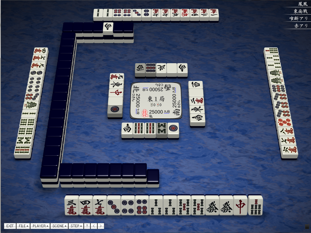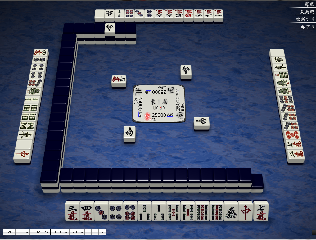 はい、東南戦の東一局スタートです。東発親ですね。ドラは西。