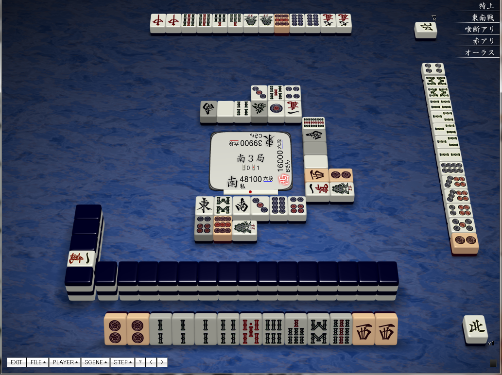 ネット麻雀「天鳳」でサンマを打ちました。